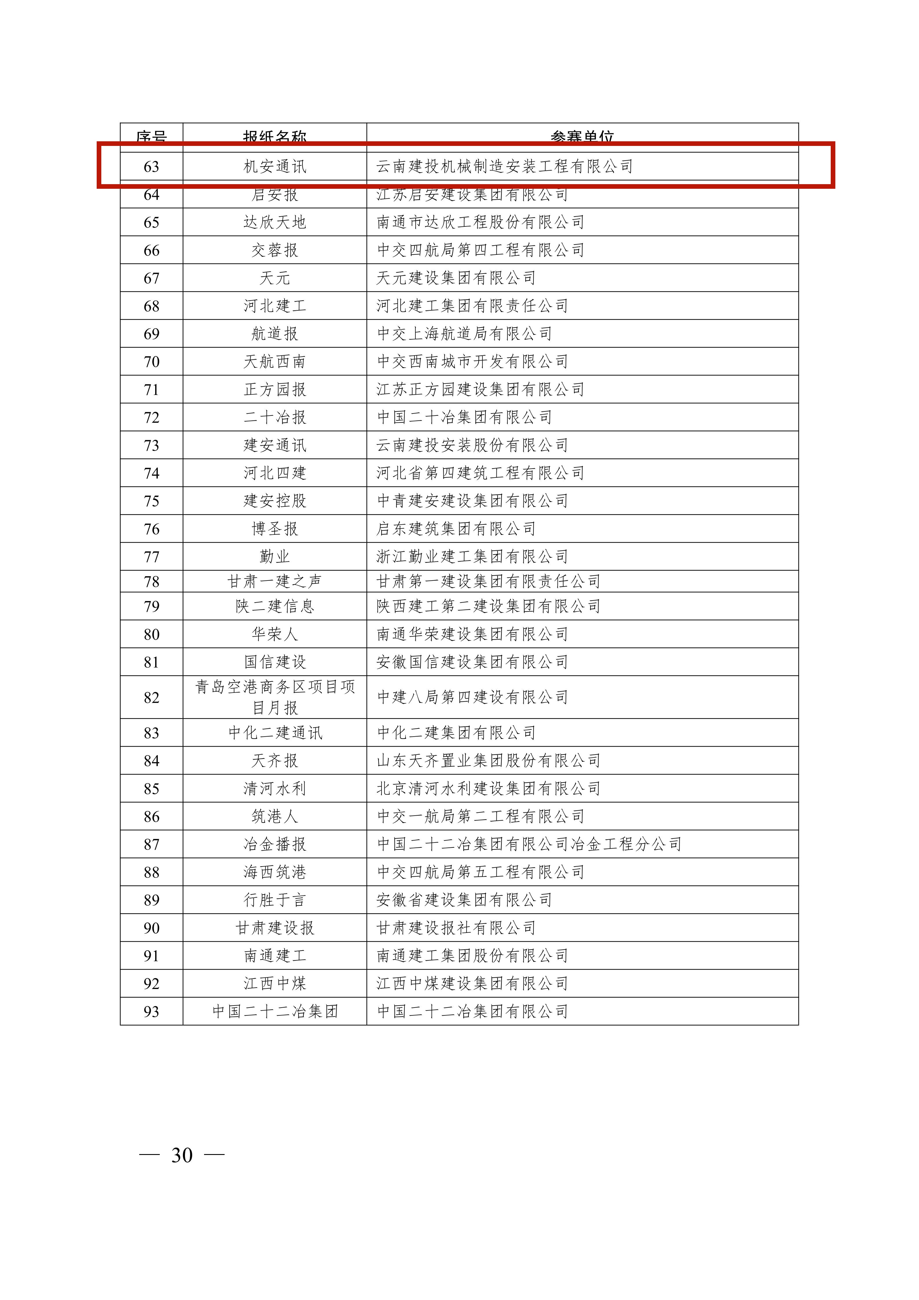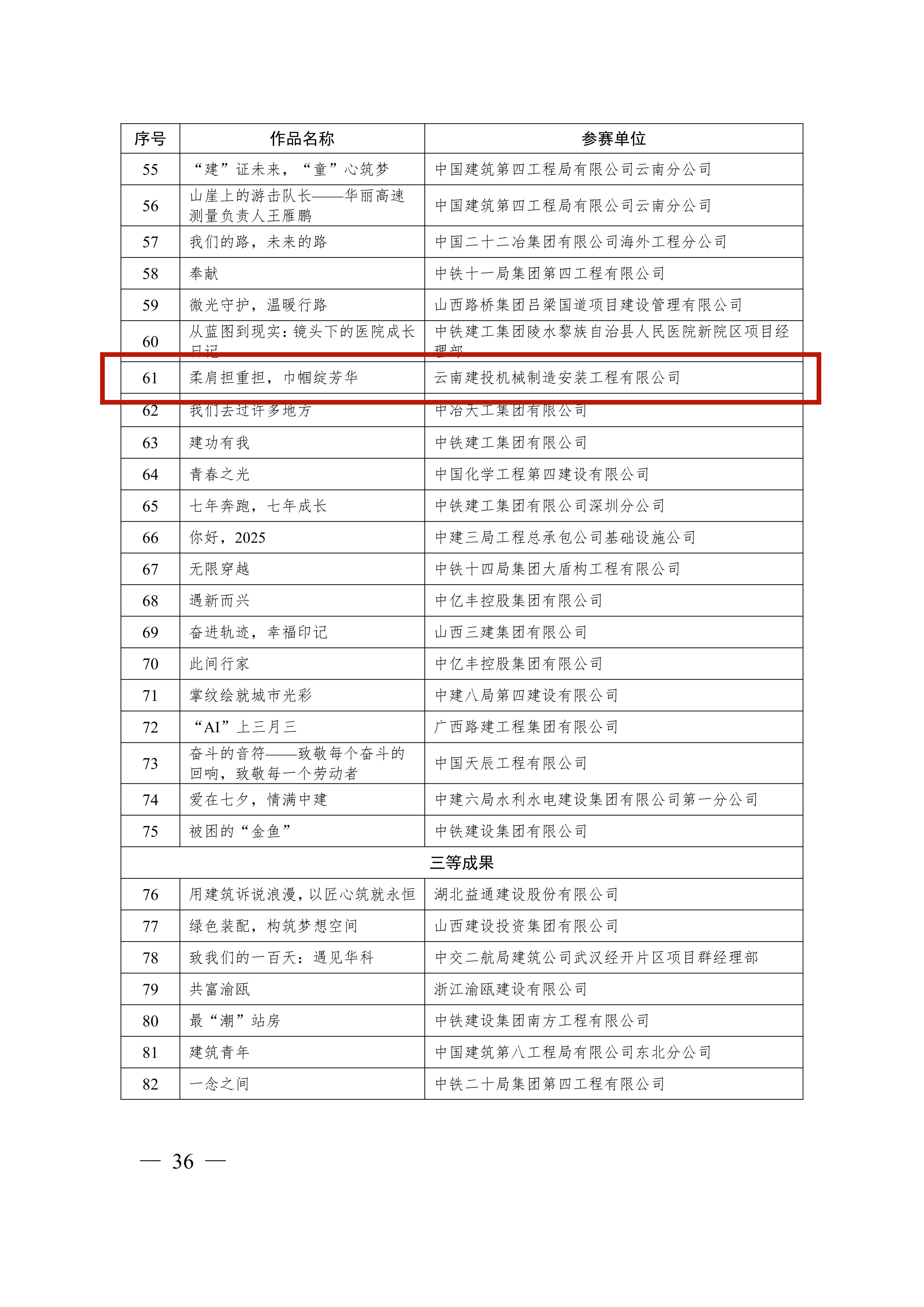 近日,中國施工企業管理協會印發《關于推廣2025年工程建設企業文化建設系列活動成果的通知》,公司《機安通訊》獲報紙競賽二等成果,《柔肩擔重擔,巾幗綻芳華》微視頻獲微視頻競賽二等成果。