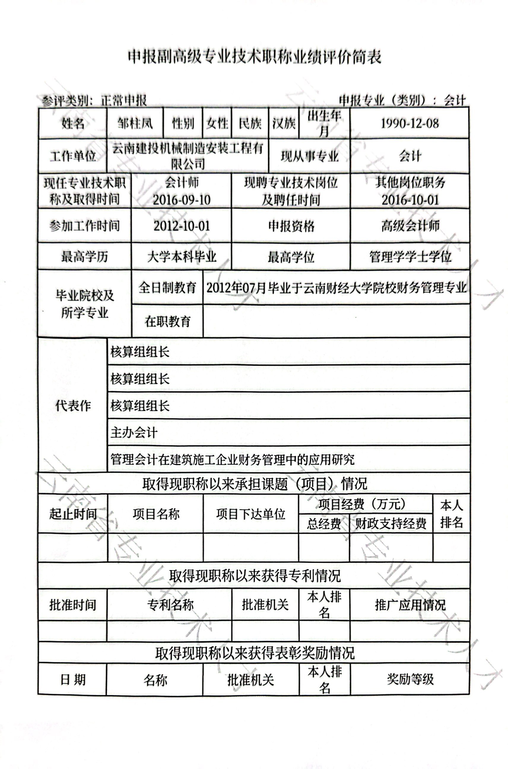 申報人員:鄒柱鳳